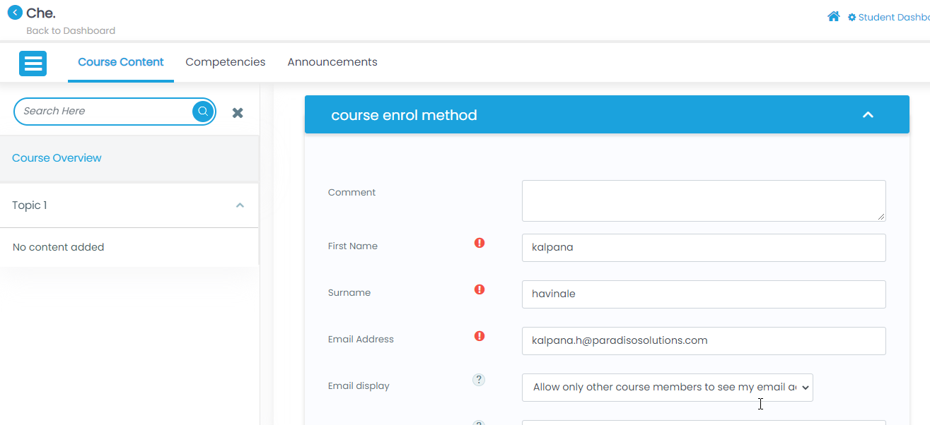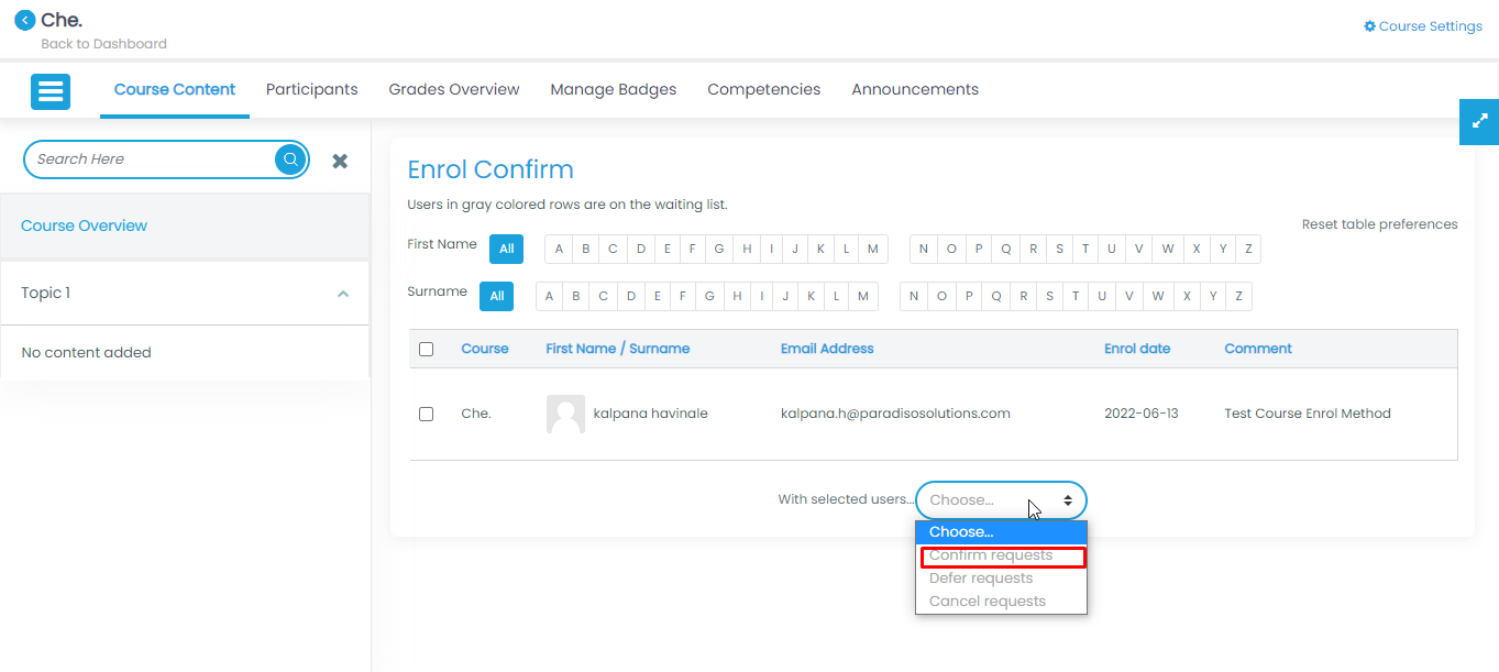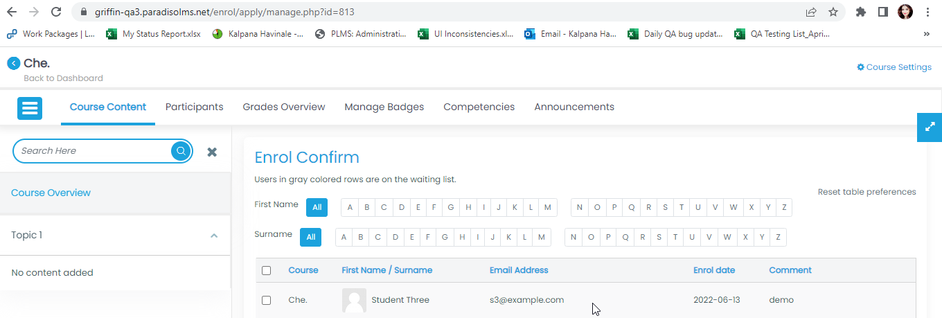 - Step 13: After Confirm request the requested student user will be enrolled and displayed on the page.