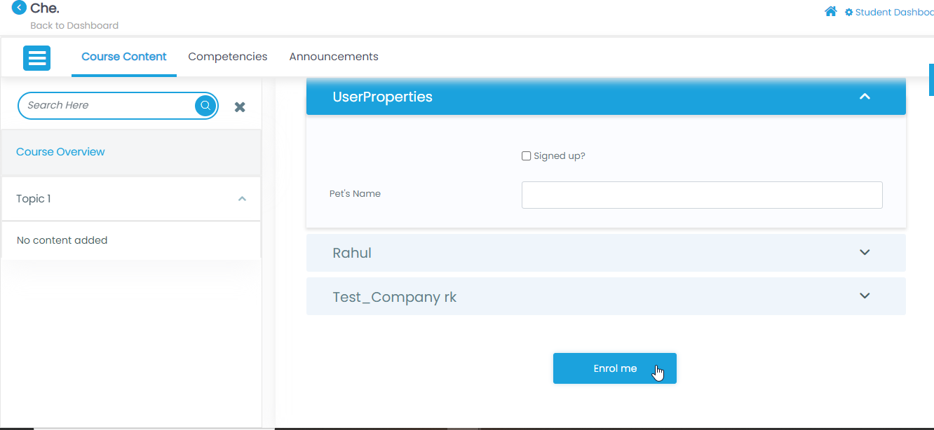 - Step 9: Log in with the student account and access the same course where the Test course enrol method is added.