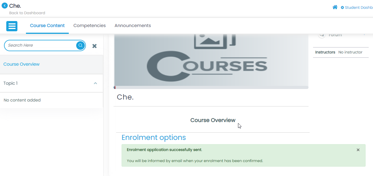 - Step 10: Student enrolment application successfully sent to the Admin.