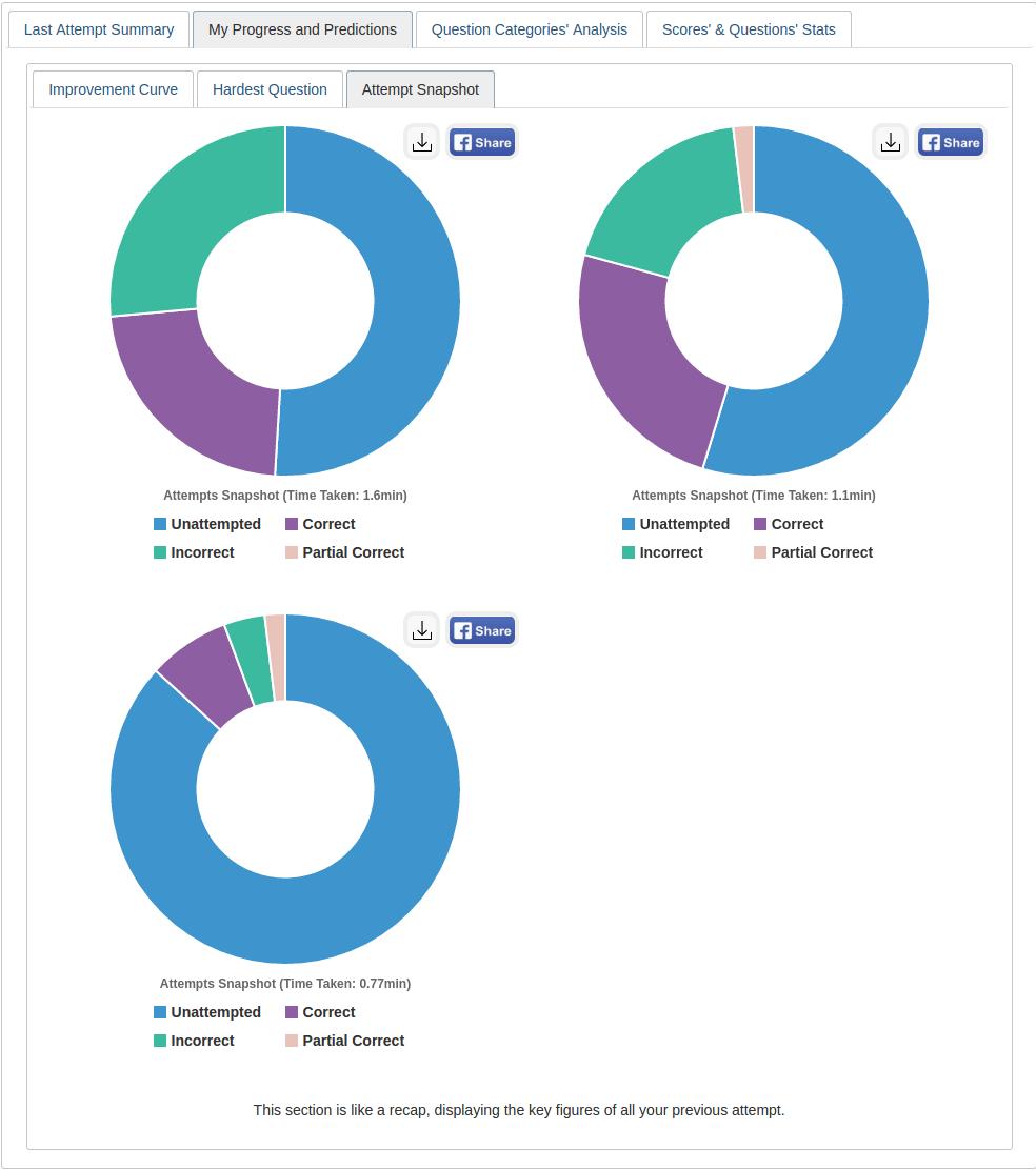 This section is like a recap, displaying the key figures of all your previous attempt.