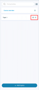 - When you build content inside a topic you have to click on the “+” icon beside the topic name.