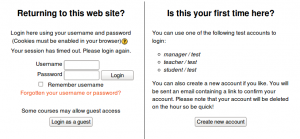 If you wish users to be able to create their own user accounts, i.e. self-register, then select Email-based self-registration (or any other enabled plugin that can support self registration, like LDAP) from the drop-down menu. This will result in a “Is this your first time here?” instructions and a “Create new account” button being displayed on the login page.