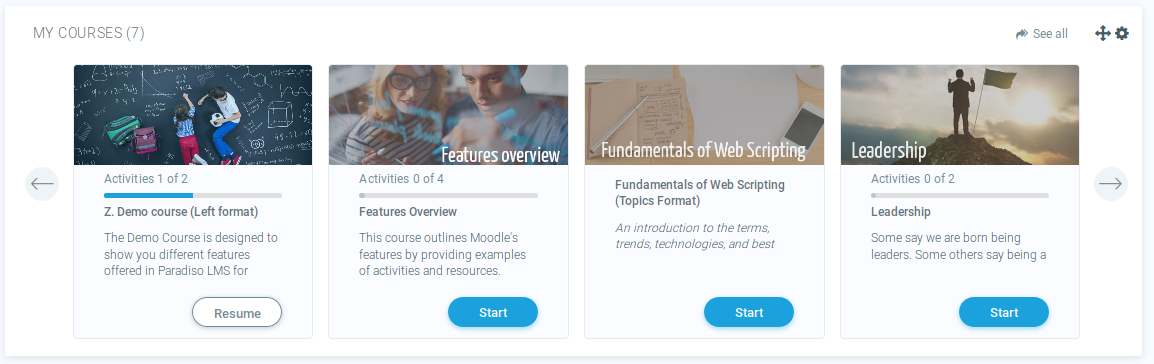 The block acts as a shortcut and displays up to twelve courses ordered from the most recent to the older course accessed.