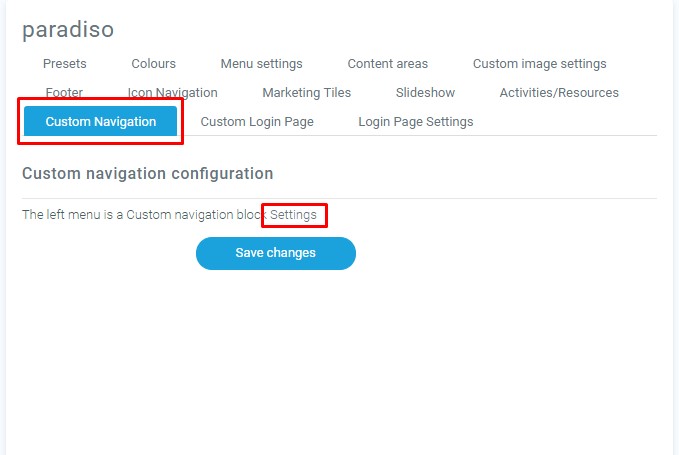 Accessing the Custom Navigation settings