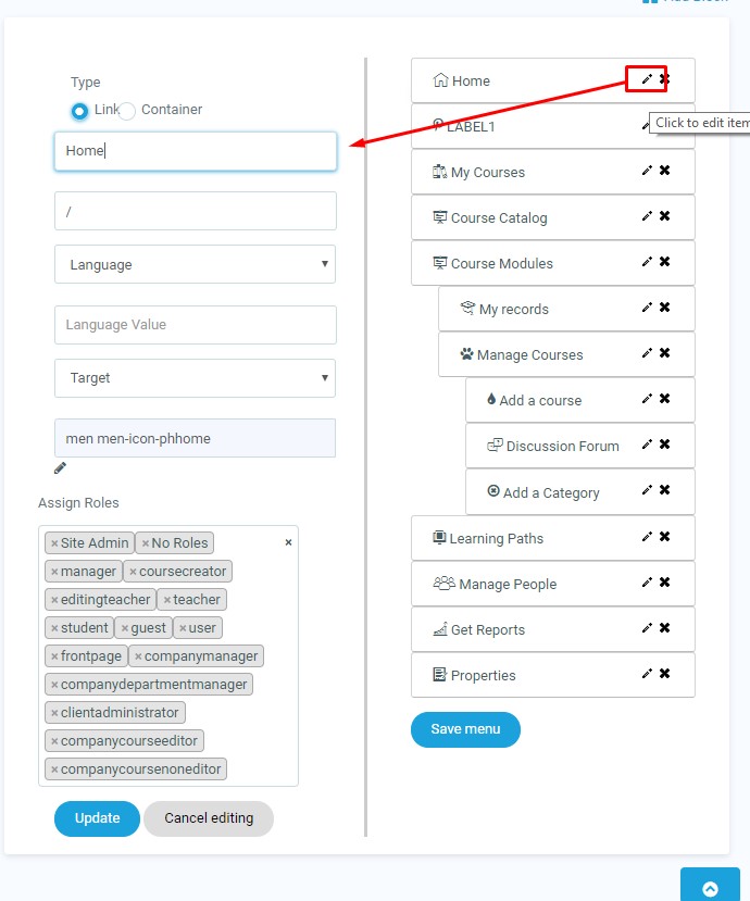 2.2 Editing an existing Navigation item