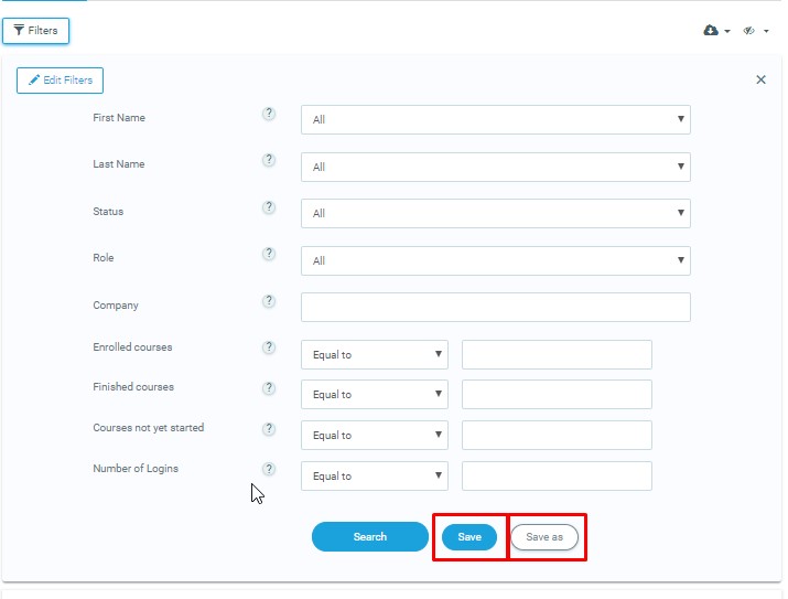 Save and Save as are new options inside the reports, that will allow you to save the information you fill in the Report’s filters in the same report (Save), or duplicate it as a new Report (Save as):