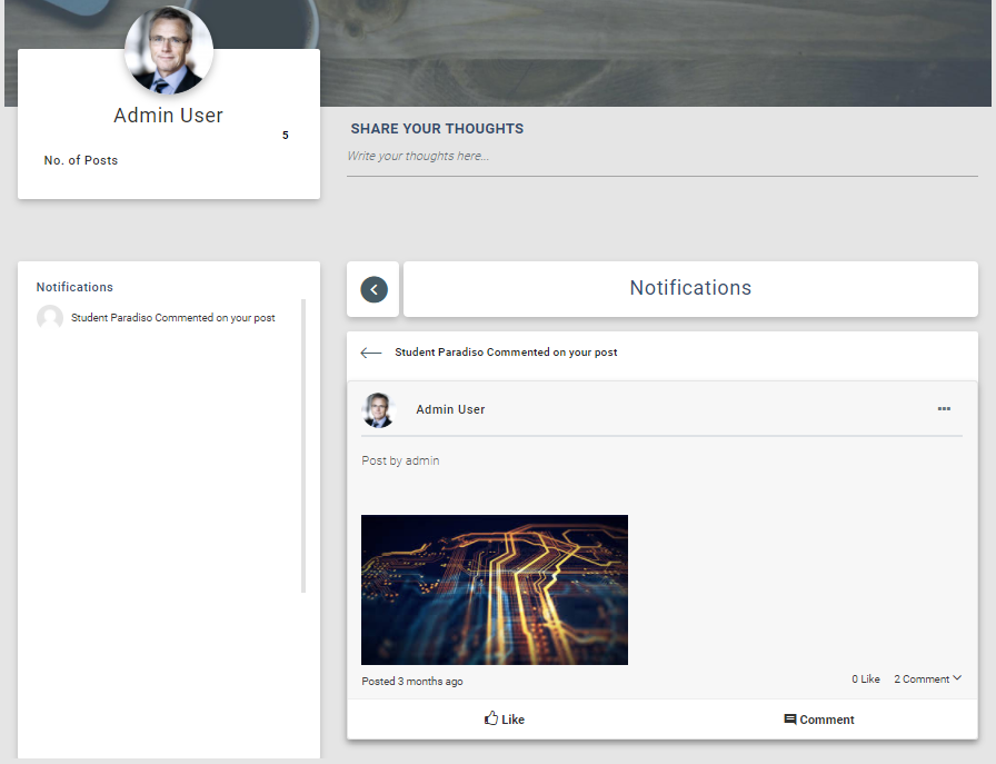 This panel shows who liked or shared the comments on your post. Notification alerts will redirect the user to specific post where they can see who did like or commented on the post.