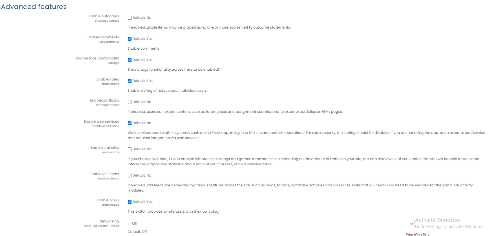 - Access Settings > Site administration > Advanced features