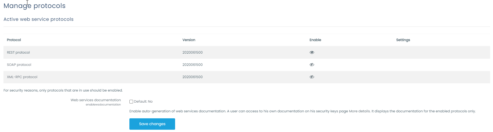 - Access Settings > Plugins > Web services > Manage protocols
